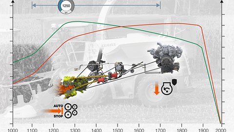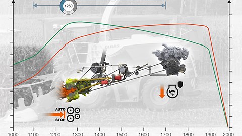 - CEMOS AUTO CROP FLOW : protection contre les surcharges avec arrêt automatique de l'alimentation de l'ensileuse si le régime moteur est trop faible