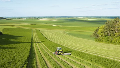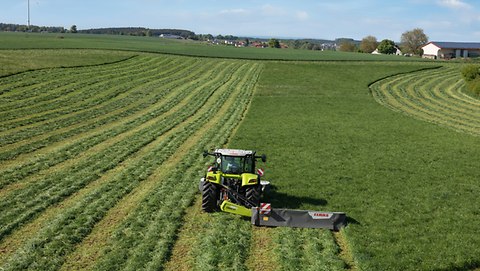 Pour l'exploitation laitière Groiner Milch KG et son cheptel de 500 bêtes en Rhénanie du Nord-Westphalie, la qualité du fourrage est essentielle. « Certaines parcelles sont très accidentées et pleines de trous », indique Felix Streuff, l'un des propriétaires. Quand les conditions le permettent, il fauche au régime de prise de force réduit (850 tr/min).