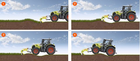 La cinématique PROFIL permet l'adaptation au sol en trois dimensions des faucheuses, indépendamment des mouvements du tracteur.