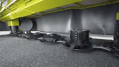 Le point de pivot oblique assure l'adaptation optimale de la faucheuse au sol. La couche végétale est préservée et le fourrage reste propre.