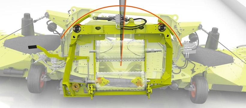 En dépit de son envergure, l'ORBIS 900 s'adapte parfaitement au profil du sol. L'angle d’attelage plat, réglable sur deux niveaux et l'architecture extrêmement plate permettent une faible hauteur de coupe jusqu'à 80 mm.