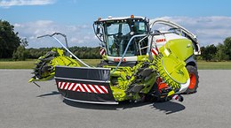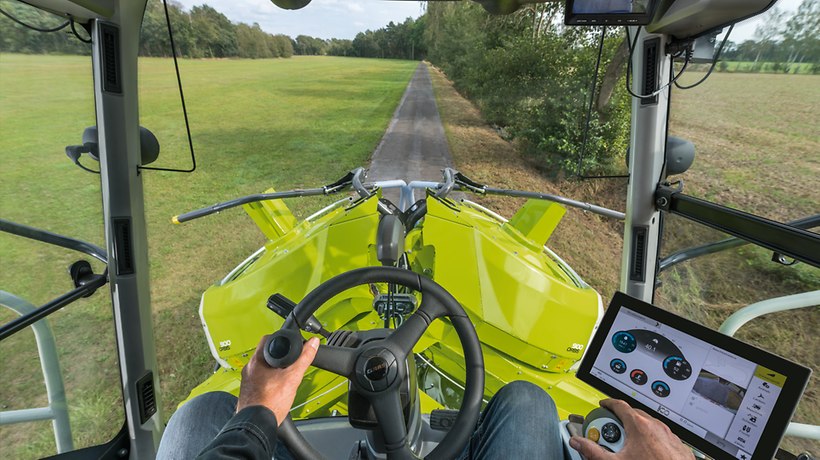 Comme tous les outils frontaux CLAAS, le transport sur route de l'ORBIS est tout à fait sûr et confortable. Le repliage compact du bec à maïs assure au conducteur une visibilité optimale lors du déplacement sur la route.