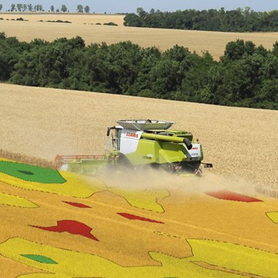 Les capteurs sur la machine de récolte enregistrent le volume récolté et le taux d'humidité du grain en mesurant la quantité de grains, la distance parcourue et la largeur de travail saisie. Toutes les deux secondes, une valeur de rendement est collectée. En combinant la mesure du rendement avec les signaux GPS précis et corrigés, les points de mesure du rendement sont dotés de coordonnées géographiques (géoréférencement). La cartographie de rendement permet une vue d'ensemble du rendement réel sur toute la surface du champ.