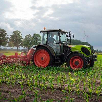 La stabilité de l'ensemble tracteur-outil et la sécurité sont optimales pour les travaux de transport et de traction. Le tracteur combine un poids à vide de 4,1 t à une répartition optimale des masses et à un empattement long. Lors de la récolte fourragère ou de l'épandage phytosanitaire, la garde au sol élevée permet de franchir les andains et de travailler dans les cultures même à un stade avancé.